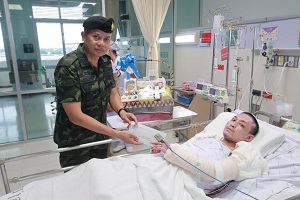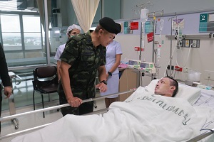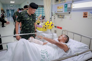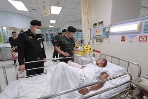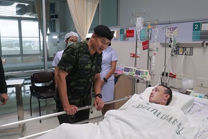 โอกาสนี้ พลโท ไพศาล หนูสังข์ แม่ทัพภาคที่ 4 / ผู้อำนวยการรักษาความมั่นคงภายในภาค 4 ได้นำกระเช้าเยี่ยมแสดงความห่วงใยจาก ผู้บังคับบัญชามาถึงผู้บาดเจ็บ พร้อมกล่าวชื่นชมในความกล้าหาญ ทุ่มเทและเสียสละ ยืนยันในนามของรัฐบาล ตลอดจนผู้บังคับบัญชาทุกคนขอนำความห่วงใยและความปรารถนาดี มาสู่เพื่อนข้าราชการและครอบครัวที่ได้รับบาดเจ็บ พร้อมย้ำว่าผู้บังคับบัญชาพร้อมให้ความช่วยเหลือดูแลอย่างสุดกำลังความสามารถ และพร้อมอำนวยความสะดวกเมื่อเกิดปัญหา โดยกองอำนวยการรักษาความมั่นคงภายในภาค 4 ส่วนหน้า มีความห่วงใยไม่ทอดทิ้งกำลังพลทุกนายและกำชับหน่วยงานที่เกี่ยวข้องเร่งดำเนินการเรื่องสิทธิสวัสดิการของกำลังพลให้เร็วที่สุด ขอให้กำลังพลรักษาสุขภาพ ร่างกายและจิตใจให้เข้มแข็งโดยเร็ว และขอให้หายจากการเจ็บป่วยในเร็ววัน ย้ำทุกฝ่ายเร่งสืบสวน สอบสวน ติดตามตัวผู้ก่อเหตุมาดำเนินคดีตามกฎหมายต่อไป