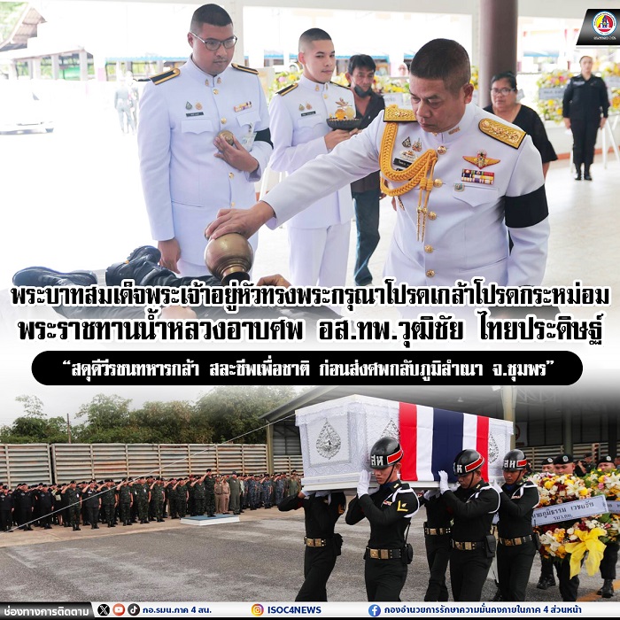 วันนี้ (14 ธันวาคม 2567) เวลา 09.00 น. ที่ อาคารสุวรรณากร วัดสุวรรณนากร ตำบลบ่อทอง อำเภอหนองจิก จังหวัดปัตตานี พลโท ไพศาล หนูสังข์ แม่ทัพภาคที่ 4 / ผู้อำนวยการรักษาความมั่นคงภายในภาค 4 เป็นประธานในพิธีอัญเชิญน้ำหลวงอาบศพแก่อาสาสมัครทหารพราน วุฒิชัย ไทยประดิษฐ์ เจ้าหน้าที่ชุดปฏิบัติการ กองร้อยทหารพรานที่ 4908 หน่วยเฉพาะกิจกรมทหารพรานที่ 49 ที่เสียชีวิตจากเหตุคนร้ายลอบยิงขณะปฏิบัติหน้าที่ ในพื้นที่บ้านปารีย์ หมู่ที่ 4 ตำบลจะแนะ อำเภอจะแนะ จังหวัดนราธิวาส กระสุนปืนเข้าบริเวณจุดสำคัญ ทีมแพทย์ และ พยาบาล ช่วยกันยื้อชีวิตจนสุดความสามารถ สุดท้าย อาสาสมัครทหารพราน วุฒิชัย ไทยประดิษฐ์ ทนพิษบาดแผลไม่ไหว เสียชีวิต ที่โรงพยาบาลศูนย์ยะลา เมื่อวันที่ 12 ธันวาคม 2567 ที่ผ่านมา โดยมี นายไชยพร นิยมแก้ว รองผู้ว่าราชการจังหวัดปัตตานี, พลตรี กรกฎ ภู่โชติ รองผู้อำนวยการรักษาความมั่นคงภายในภาค 4 ส่วนหน้า, ผู้แทนรองผู้ว่าราชการจังหวัดนราธิวาส, ผู้แทนศูนย์อำนวยการบริหารจังหวัดชายแดนภาคใต้, รองผู้บัญชาการตำรวจภูธรภาค 9, คณะผู้บังคับบัญชา, ผู้บังคับหน่วยเฉพาะกิจปัตตานี, ผู้แทนหน่วยเฉพาะกิจในพื้นที่, ส่วนราชการ, เจ้าหน้าที่ทหาร, ตำรวจ ตลอดจนประชาชนในพื้นที่ร่วมพิธีแสดงความเคารพและอาลัยแก่วีรชนทหารกล้า ยังความปลื้มปิติในพระมหากรุณาธิคุณแก่ครอบครัวไทยประดิษฐ์ และเพื่อนทหารเป็นล้นพ้น