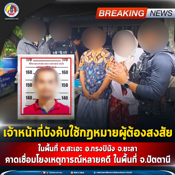 วันนี้ (14 ธันวาคม 2567) เวลาประมาณ 12.30 น. หน่วยปฏิบัติการพิเศษร่วมประจำจังหวัดยะลา ได้รับแจ้งข้อมูลจากพี่น้องประชาชน ทำให้สามารถบังคับใช้กฎหมายต่อนายมูฮำมัด มาเซ อายุ 34 ปี ซึ่งเข้ามาพักพิงในพื้นที่ หมู่ที่ 5 ตำบลสะเอะ อำเภอกรงปินัง จังหวัดยะลา โดยในระหว่างเจ้าหน้าที่เข้าแสดงตัวต่อนางราซือนะ สอนิ (แสดงตัวเป็นเจ้าของบ้านและเป็นภรรยาของนาย มูฮำมัด มาเซ) เพื่อขอตรวจค้นบ้านโดยมีสารวัตรกำนันตำบล และ น้องชายของนางราซือนะ สอนิ เป็นพยานในการตรวจค้น ซึ่งระหว่างเจ้าหน้าที่เข้าแสดงตัวต่อเจ้าของบ้าน นายมูฮำมัด มาเซ ผู้ต้องสงสัย ได้เปิดประตูด้านข้างตัวบ้าน วิ่งหลบหนีเข้าไปในป่าท้ายหมู่บ้าน เมื่อเจ้าหน้าที่สังเกตุเห็นจึงได้วิ่งติดตามและสามารถควบคุมตัวได้ในป่าท้ายหมู่บ้าน ห่างจากตัวบ้านประมาณ 350 เมตร เจ้าหน้าที่จึงทำการควบคุมตัว(ชั่วคราว) และดำเนินการขอตรวจค้นบ้านนางราซือนะ สอนิ ซึ่งเป็นบ้านที่ผู้ต้องสงสัยพักอาศัยอยู่ โดย นายมูฮำมัด มาเซ คาดว่าเชื่อมโยงกับเหตุการณ์หลายคดี ดังนี้