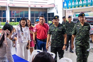 จากนั้น แม่ทัพภาคที่ 4 ได้เดินทางต่อไปยัง ศูนย์อำนวยการที่พักผู้ประสบอุทกภัย โรงเรียนเทศบาลวัดเสมาเมือง ให้กำลังใจประชาชนที่อพยพอยู่ที่ศูนย์พักผู้ประสบอุทกภัยแห่งนี้ โดยจัดทีมแพทย์จากโรงพยาบาลค่ายวชิราวุธ มาให้บริการตรวจสุขภาพประชาชนที่ประสบอุทกภัยในพื้นที่ ก่อนจะเดินทางต่อไปยังคลองหน้าเมือง เพื่อติดตามสถานการณ์ระดับน้ำในพื้นที่ ซึ่งขณะนี้ระดับน้ำ ยังคงต้องเฝ้าระวังและติดตามสถานการณ์อย่างต่อเนื่อง