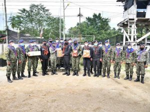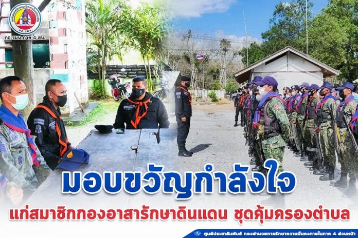 พร้อมกันนี้ผู้บังคับหน่วยเฉพาะกิจกรมทหารพรานที่ 46 ได้มอบสิ่งของอุปโภคบริโภคและงบประมาณสนับสนุน เพื่อเป็นขวัญกำลังใจที่ดีแก่สมาชิกกองอาสารักษาดินแดนประจำฐานปฏิบัติการชุดคุ้มครองตำบล และเจ้าหน้าที่ประจำชุดคุ้มครองตำบล