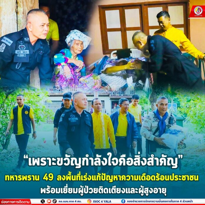 ทั้งนี้ กองทัพบกและหน่วยเฉพาะกิจกรมทหารพรานที่ 49 ยังคงมุ่งมั่นเดินหน้าลงพื้นที่ช่วยเหลือประชาชนในทุกโอกาส เพื่อให้เกิดการเปลี่ยนแปลงเชิงบวกในพื้นที่และสร้างความเชื่อมั่นให้กับประชาชนต่อไป