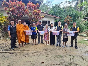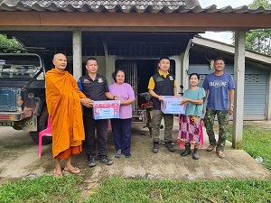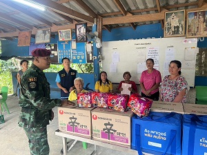 ด้าน ชุดสันติสุขที่ 306 ลงพื้นที่มอบของช่วยเหลือ กลุ่มประชาชนที่ประสบภัยจากดินสไลด์ ณ บ้านคอกช้าง หมู่ที่ 7 ตำบลแม่หวาด อำเภอธารโต จังหวัดยะลา เพื่อแสดงออกถึงความห่วงใย ช่วยสร้างขวัญและกำลังใจ ฟื้นฟูบรรเทาความเดือดร้อนของประชาชนในพื้นที่ หลังประสบภัยในห้วงที่ผ่านมา