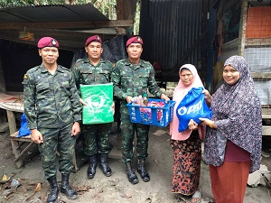 ขณะที่ ชุดสันติสุขที่ 301 ร่วมกับ ชุดทักษิณสัมพันธ์ที่ 332 ได้ลงพื้นที่บ้านเงาะกาโป หมู่ที่ 3 ตำบลบันนังสตา อำเภอบันนังสตา จังหวัดยะลา ดำเนินกิจกรรมมอบถุงยังชีพให้กับประชาชน ผู้ยากไร้ เพื่อบรรเทาความเดือดร้อนเบื้องต้น ตลอดจนช่วยให้ครอบครัวแบ่งเบาภาระค่าใช้จ่ายภายในครัวเรือนให้กับประชาชน