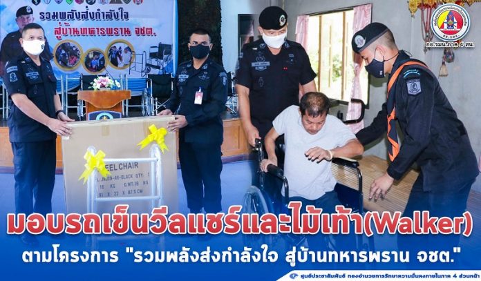 สำหรับโครงการ “รวมพลังส่งกำลังใจ สู่บ้านทหารพราน จชต.” เป็นโครงการที่กองกำลังทหารพรานจังหวัดชายแดนภาคใต้ ร่วมกับ หน่วยขึ้นตรงของกองกำลังทหารพรานจังหวัดชายแดนภาคใต้ ที่เล็งเห็นความสำคัญของกำลังพลและครอบครัว จึงได้ร่วมกันสนับสนุนงบประมาณในการจัดซื้อรถเข็นผู้ป่วยวีลแชร์ และไม้เท้า 4 ขา (Walker) เพื่อนำไปมอบให้แก่กำลังพลและครอบครัว ที่อยู่ในระยะที่จำเป็นต้องได้รับการฟื้นฟูสมรรถภาพร่างกาย หรือครอบครัวกำลังพลที่มีความพิการ โดยจากการสำรวจพบว่ามีกำลังพลและครอบครัวที่อยู่ในระยะที่จำเป็นจะต้องได้รับการฟื้นฟูสมรรถภาพร่างกายจำนวน 89 คน จึงต้องใช้อุปกรณ์ทางการแพทย์ช่วยเหลือเพื่อให้กลับมามีสมรรถภาพร่างกายที่ดีขึ้น สามารถใช้ชีวิตประจำวันได้อย่างปกติ