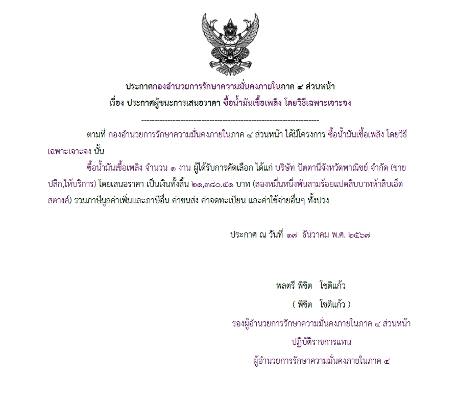 จัดซื้อ จัดจ้างประกาศผู้ชนะการเสนอราคา ประกาศผู้ชนะการเสนอราคา ขึ้นน้ำมันเชื้อเพลิง โดยวิธีเฉพาะเจาะจง December 19, 2024 311 Share Facebook Twitter Google+ Telegram LINE