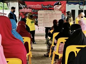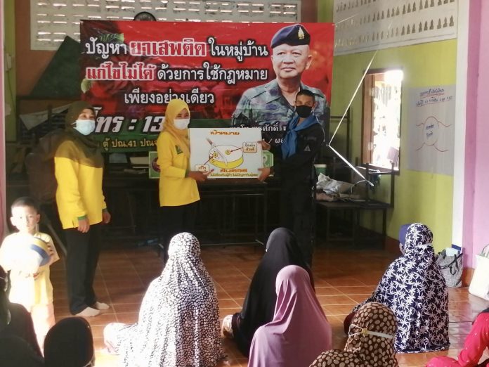 เสริมครัวเรือนสมาชิกชุมชนเข้มแข็งเอาชนะยาเสพติด การจัดตั้งกองทุนศรัทธาในหมู่บ้าน การดูแลเด็ก ๆที่ยั สำหรับเวทีประชาคม ชุมชนเข้มแข็ง ขับเคลื่อนงานการแก้ไขปัญหายาเสพติดในหมู่บ้าน เป็นการพูดคุยในเรื่องการส่งเงไม่ใช้ยาเสพติด/ แนวทางในการพัฒนาคุณภาพชีวิต การให้ความรู้เกี่ยวกับโทษและพิษภัยยาเสพติด กิจกรรมการสร้างภูมิคุ้มกันเรื่องยาเสพติด (ค่ายญาลันนันบารูจูเนียร์, ค่ายเยาวชนชาย – หญิง) การนำผู้เสพยา เข้าการบำบัดที่ โรงเรียนลูกผู้ชาย ตำบลบางมะรวด อำเภอปะนาเระ จังหวัดปัตตานี นอกจากนี้ยัง อธิบายกระบวนการทำงานร่วมกันระหว่าง ชุดปฏิบัติการกิจการพลเรือนในพื้นที่ ร่วมกับ จิตอาสาฯ และชาวบ้านในการช่วยกันป้องกันและดูแลการระบาดเรื่องยาเสพติดในพื้นที่เพื่ออนาคตที่ดีของเด็ก ๆ และเยาวชนให้ห่างไกลจากยาเสพติดต่อไป ซึ่งจะมีการนัดการประชุมครั้งต่อไปอย่างต่อเนื่อง