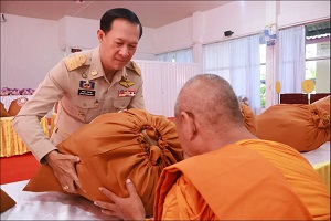 สำหรับพระสงฆ์ที่รับมอบถุงยังชีพพระราชทานในครั้งนี้ จาก 12 วัด ในพื้นที่เขตคณะสงฆ์อำเภอเมืองนราธิวาส ประกอบด้วย วัดกำแพง ,วัดขวัญไม้งาม ,วัดเขากง ,วัดเขานาคา ,วัดโคกโก ,วัดลำภู ,วัดบางปอ ,วัดบางนรา ,วัดประชาภิรมย์ ,วัดพนาสณฑ์ ,วัดพรหมนิวาส และวัดพิกุลทอง โดยมูลนิธิอาสาเพื่อนพึ่ง(ภาฯ) ยามยาก สภากาชาดไทย มอบถุงยังชีพพระราชทาน แก่ผู้ว่าราชการจังหวัดนราธิวาส เพื่อนำถวายแด่พระภิกษุสงฆ์ จำนวน 250 ชุด และมอบถุงยังชีพพระราชทาน จำนวน 5,000 ชุด ให้แก่ประชาชนที่ประสบอุทกภัยในพื้นที่จังหวัดนราธิวาส