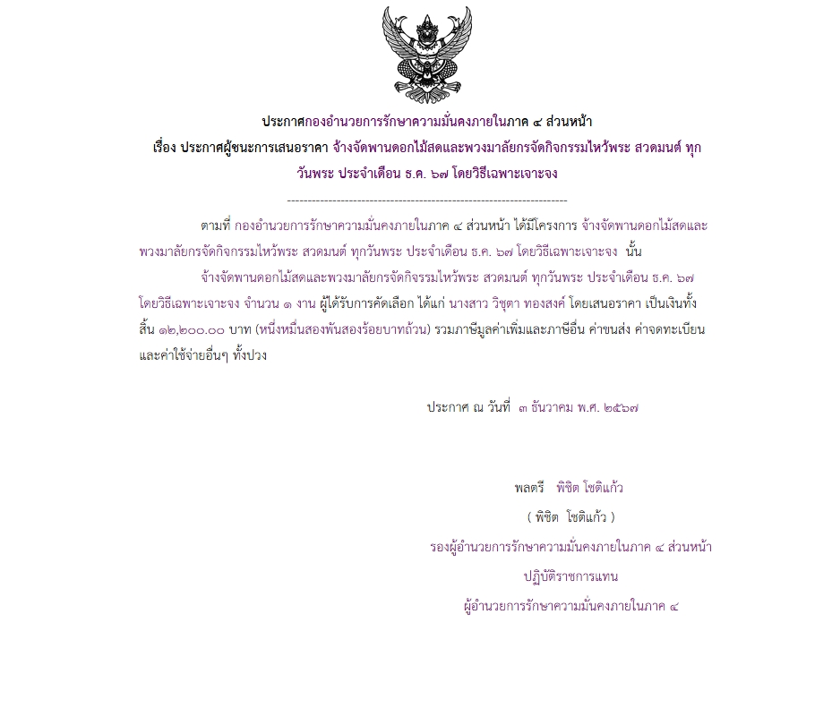 จัดซื้อ จัดจ้างประกาศผู้ชนะการเสนอราคา ประกาศผู้ชนะการเสนอราคา จ้างจัดพานดอกไม้สดและพวงมาลัยกรจัดกิจกรรมไหว้พระ สวดมนต์ ทุกวันพระ ประจำเดือน ธ.ค. ๖๗ โดยวิธีเฉพาะเจาะจง December 26, 2024 258 Share Facebook Twitter Google+ Telegram LINE