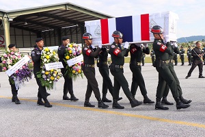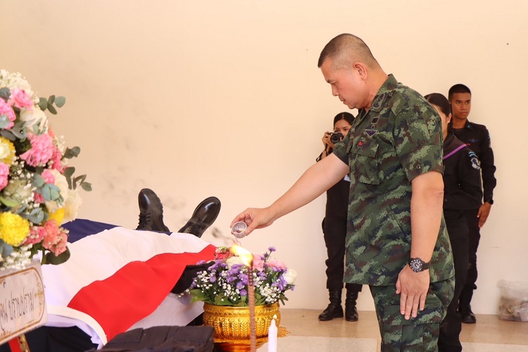 โอกาสนี้ รองแม่ทัพภาคที่ 4 /รองผู้อำนวยการรักษาความมั่นคงภายในภาค 4 ส่วนหน้า ได้วางพวงหรีดเคารพศพในนามของ นางสาว แพทองธาร ชินวัตร นายกรัฐมนตรีในฐานะผู้อำนวยการรักษาความมั่นคงภายในราชอาณาจักร , นาย ภูมิธรรม เวชยชัย รัฐมนตรีว่าการกระทรวงกลาโหม , พลเอก พนา แคล้วปลอดทุกข์ ผู้บัญชาการทหารบก /รองผู้อำนวยการรักษาความมั่นคงภายในราชอาณาจักร, และวางพวงหรีดเคารพศพในนามของ พลโท ไพศาล หนูสังข์ แม่ทัพภาคที่ 4 / ผู้อำนวยการรักษาความมั่นคงภายในภาค 4 พร้อมกันนี้ยังมอบเหรียญบางระจัน, ใบประกาศนียบัตร และมอบเงินช่วยเหลือเบื้องต้น แก่ทายาทครอบครัวผู้วายชนม์ เพื่อเป็นการประกาศเกียรติคุณ เชิดชูเกียรติ ในการประกอบคุณงามความดี ความเสียสละ ของผู้วายชนม์