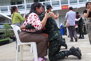 ด้านนางเยาวเรศ ขุนทองจับ ตัวแทนผู้ปกครองทหารใหม่ ได้กล่าวว่า “ตื้นตันใจเป็นอย่างมากที่ได้มาเจอลูกชายในวันนี้ ลูกได้เป็นทหารที่เปรียบเสมือนรั้วของชาติ เป็นหน้าที่ที่ถือว่าเป็นเกียรติและความรับผิดชอบต่อประเทศชาติ ลูกมีความเปลี่ยนแปลงไปจากเดิมมากในหลายด้าน มีระเบียบวินัย ความอดทน และความแข็งแกร่งทางร่างกายและจิตใจ การเข้ารับการฝึกและการใช้ชีวิตในค่ายทหารช่วยให้บุตรหลานเรียนรู้การพึ่งพาตนเอง มีความรับผิดชอบ และพัฒนาทักษะชีวิตที่สำคัญ
