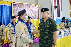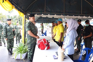 จากนั้นได้เดินทางต่อไปยังที่ว่าการอำเภอระแงะ, หน่วยเฉพาะกิจกรมทหารพรานที่ 45 และตรวจเยี่ยมการฝึกอบรมหลักสูตรเสริมสร้างประสิทธิภาพสมาชิกกองอาสารักษาดินแดนจังหวัดชายแดนภาคใต้ ประจำปีงบประมาณ 2568 รุ่นที่ 1 ระหว่างวันที่ 16 ธันวาคม 2567 – 6 มกราคม 2568 ณ โรงเรียนราชประชานุเคราะห์ที่ 19 ตำบลตันหยงมัส อำเภอระแงะ จังหวัดนราธิวาส พร้อมกำชับให้ปรับแผนการปฏิบัติให้มีความรัดกุม ทั้งเชิงรุกและเชิงรับ โดยเฉพาะการเพิ่มความระมัดระวังและเข้มงวด ตลอดจนการอำนวยความสะดวกให้กับพี่น้องประชาชนในห้วงเทศกาลปีใหม่ที่ใกล้จะถึงนี้ รวมทั้งให้กำลังใจกำลังพลที่ไม่ได้กลับบ้านในห้วงเทศกาลปีใหม่ แต่ต้องปฏิบัติงานดูแลความปลอดภัยให้ประชาชนอย่างเต็มกำลังความสามารถ พร้อมมอบสิ่งของอุปโภคบริโภค เพื่อสร้างขวัญกำลังใจแก่เจ้าหน้าที่อีกด้วย