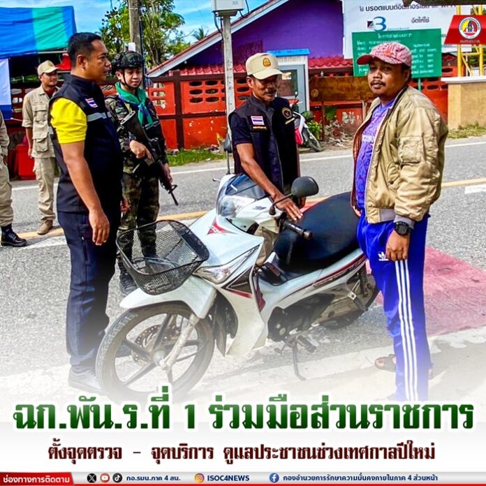 เมื่อวันที่ 29 ธันวาคม 2567 หน่วยเฉพาะกิจ กองพันทหารราบที่ 1 (ฉก.พัน.ร.ที่ 1) จัดกำลังพลของหน่วย ร่วมกับ ศูนย์ปฏิบัติการอำเภอ, เจ้าหน้าที่ตำรวจ และส่วนราชการต่างๆ จัดตั้งจุดตรวจและจุดบริการประชาชนในช่วงเทศกาลส่งท้ายปีเก่า 2567 ต้อนรับปีใหม่ 2568 เพื่ออำนวยความสะดวกแก่ประชาชน ลดการเกิดอุบัติเหตุทางจราจร