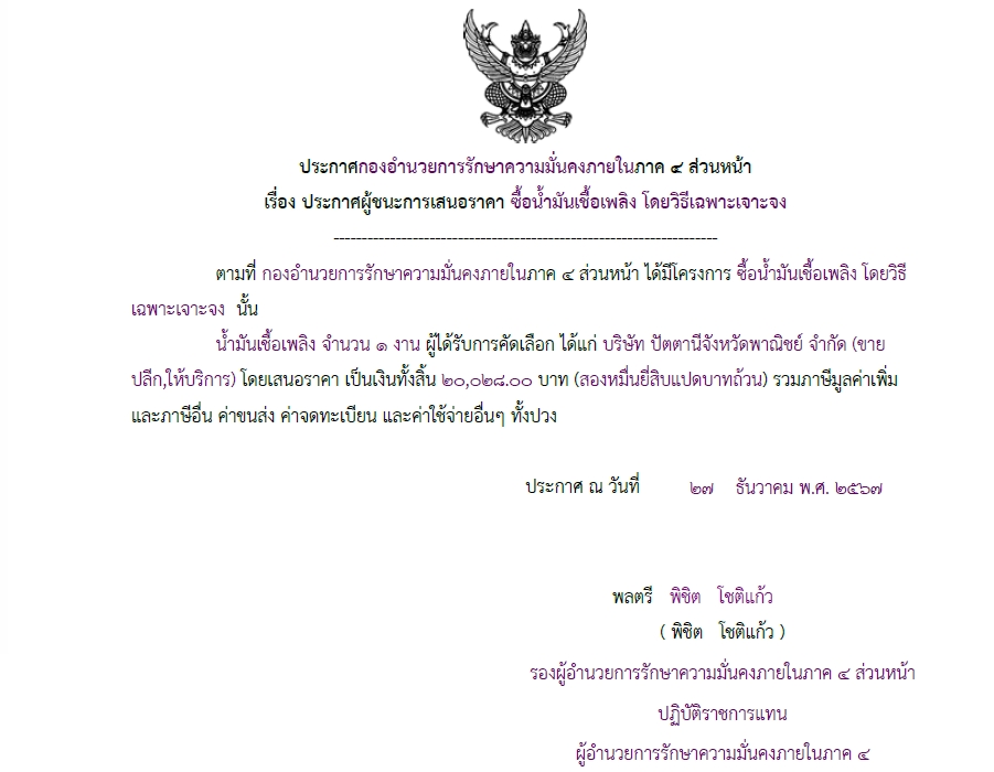 จัดซื้อ จัดจ้างประกาศผู้ชนะการเสนอราคา ประกาศผู้ชนะการเสนอราคา ซื้อน้ำมันเชื้อเพลิง โดยวิธีเฉพาะเจาะจง December 30, 2024 234 Share Facebook Twitter Google+ Telegram LINE