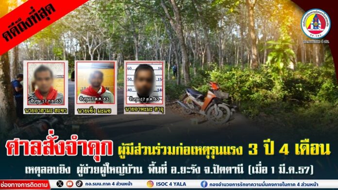 กระทั่งเมื่อวันที่ 7 พฤษภาคม 2567 ศาลฎีกาพิพากษา ยืนตามศาลอุทธรณ์ภาค 9 “จำคุก 3 ปี 4 เดือน” นายอาฮามะ ฮะซา จำเลยที่ 1, นายเซ็ง มะแซ จำเลยที่ 2 และ นายอาหะมะ สาอุ จำเลยที่ 3 ความผิดฐาน อั้งยี่ ซ่องโจร เนื่องจากคำให้การของจำเลยทั้ง 3 เชื่อได้ว่าจำเลยทั้ง 3 มีส่วนร่วมในการก่อเหตุ โดยรับหน้าที่ทิ้งใบปลิวของกลางในคดีนี้ ผลการตรวจสอบลายมือกับสมุดบันทึกของจำเลยตรงกันกับคำรับสารภาพของจำเลยทั้ง 3 สามารถรับฟังเป็นพยานหลักฐานได้