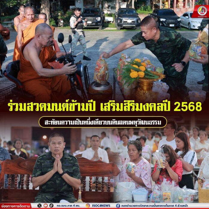 การสวดมนต์ข้ามปีถือเป็นกิจกรรมที่มีเป้าหมายในการส่งเสริมคุณค่าทางจิตใจ ช่วยให้พุทธศาสนิกชนได้ทบทวนสิ่งที่ผ่านมาพร้อมกับตั้งจิตอธิษฐานเพื่อเริ่มต้นปีใหม่ด้วยความตั้งมั่นและมุ่งมั่นที่จะทำสิ่งดีๆ โอกาสนี้ วันที่ 31 ธันวาคม 2567 เวลา 23.00 น. พลโท ไพศาล หนูสังข์ แม่ทัพภาคที่ 4/ผู้อำนวยการรักษาความมั่นคงภายในภาค 4 ได้ร่วมสวดมนต์กับพุทธศาสนิกชนในพื้นที่ ที่วัดคูหา อำเภอสะบ้าย้อย จังหวัดสงขลา สะท้อนให้เห็นถึงความเป็นหนึ่งเดียวบนดินแดนพหุวัฒนธรรม และการรวมพลังของคนในพื้นที่สร้างสรรค์สิ่งดีๆ ร่วมกัน สำหรับคืนข้ามปีนี้ แม่ทัพภาคที่ 4 ได้พักแรมในพื้นที่วัดคูหา ร่วมกับผู้บังคับบัญชา และผู้นำท้องที่เพื่อเป็นการสร้างขวัญกำลังใจให้กับประชาชนและเจ้าหน้าที่ผู้ปฏิบัติภารกิจอีกด้วย