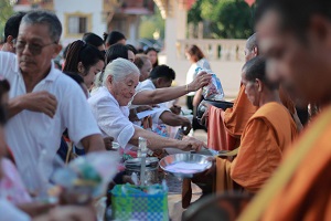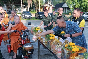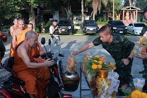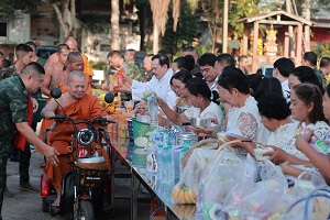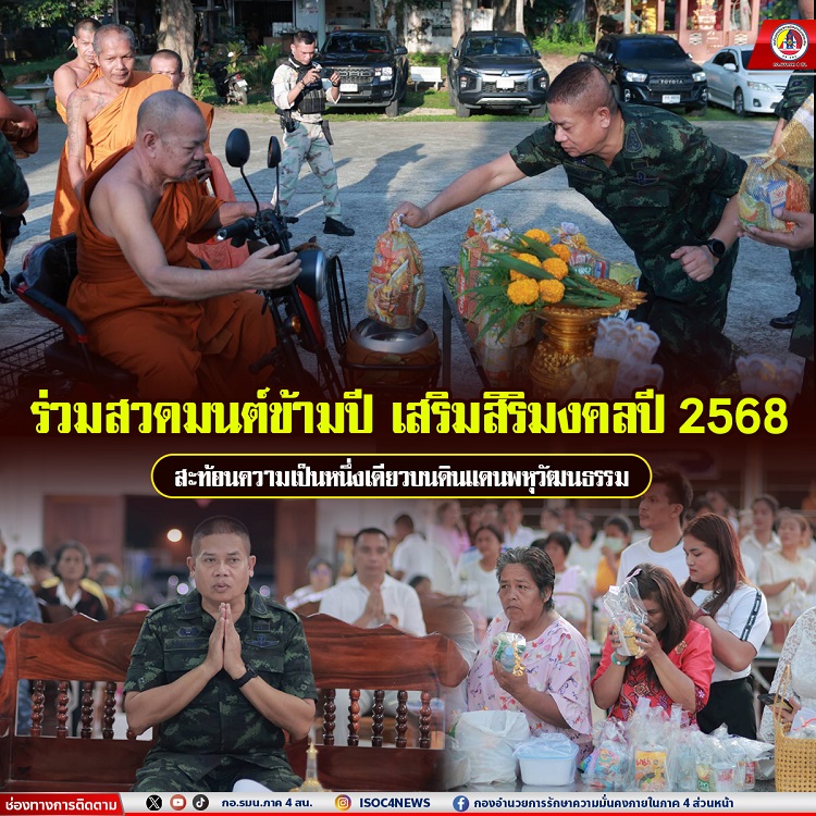 ทั้งนี้ อีกหนึ่งประเพณีโบราณที่ต่อจากสวดมนต์ข้ามปี คือ การทำบุญ ตักบาตร ในช่วงเช้าของวันที่ 1 มกราคม โดย พลโท ไพศาล หนูสังข์ แม่ทัพภาคที่ 4/ผู้อำนวยการรักษาความมั่นคงภายในภาค 4 ได้ร่วมทำบุญ ตักบาตรกับพุทธศาสนิกชน ในวันที่ 1 มกราคม 2568 เวลา 07.00 น. ที่วัดคูหา อำเภอสะบ้าย้อย จังหวัดสงขลา เสริมสิริมงคลให้กับชีวิต ตลอดจนเป็นการแสดงถึงความกตัญญูต่อพระพุทธศาสนา และการอุทิศส่วนกุศลให้แก่บรรพบุรุษและผู้ล่วงลับอีกด้วย