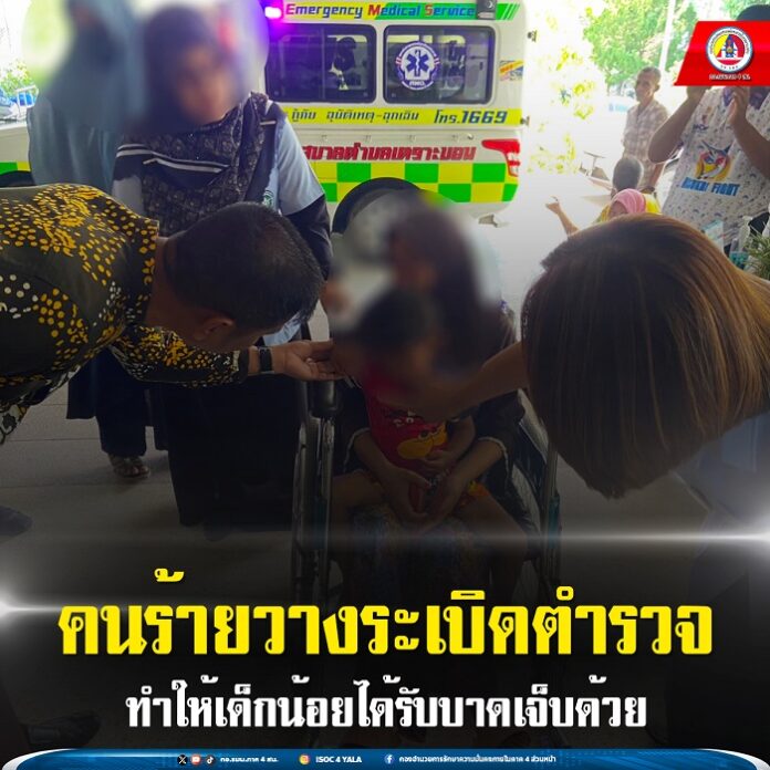 นอกจากนี้สะเก็ดระเบิดยังปลิวไปถูกเด็กชาย บูฮากิม เจะนิ อายุ 3 ขวบ ทำให้เกิดบาดแผลบริเวณหางคิ้ว ขณะนั่งรถจักรยานยนต์ไปกับผู้ปกครอง รวมทั้งเหตุการณ์ระเบิดทำให้โรงเรียนหยุดการเรียนการสอนโดยคุณครูต้องประสานให้ผู้ปกครองมารับบุตรหลานกลับบ้านเป็นการด่วนเพื่อป้องกันอันตรายหากมีการก่อเหตุซ้ำ จนอาจเป็นอันตรายแก่เด็กนักเรียนได้ โดยเด็กนักเรียนส่วนใหญ่อยู่ในอาการหวาดกลัวและตื่นตกใจ