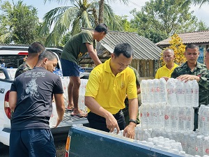 โดยครั้งนี้เจ้าหน้าที่ได้มอบข้าวสาร (ถุงละ 5 กิโลกรัม) จำนวน 35 ถุง, น้ำดื่ม (แพ็ค) จำนวน 35 แพ็ค ให้กับพี่น้องประชาชน จำนวน 35 ครัวเรือน เพื่อบรรเทาความเดือดร้อนในเบื้องต้น พร้อมทั้งนำความห่วงใยต่อพี่น้องประชาชนในพื้นที่