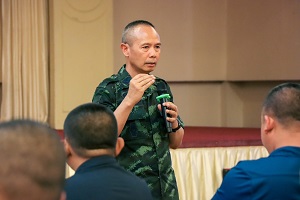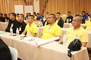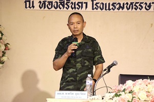 ในการนี้ พลตรี ชาคริต อุจะรัตน รองแม่ทัพภาคที่ 4 / รองผู้อำนวยการรักษาความมั่นคงภายในภาค 4 ส่วนหน้า ได้บรรยายพิเศษในหัวข้อ “แนวทางในการสร้างสันติสุข ในพื้นที่จังหวัดชายแดนภาคใต้“ มีใจความสำคัญตอนหนึ่งว่า งานด้านกิจการพลเรือนนับเป็น กลไกหลักในการสร้างการรับรู้ สร้างความเข้าใจ แก่ประชาชน ในพื้นที่จังหวัดชายแดนภาคใต้เป็นสำคัญ ตลอดจนเป็นการสร้างความเข้าใจในพื้นที่แก่องค์กรและหน่วยงานทั้งในและต่างประเทศได้รับทราบความจริง และเมื่อองค์กรต่าง ๆ เหล่านั้นเข้าใจ จะเป็นอีกพลังหนุนเสริมการทำงานช่วยกันสนับสนุนการแก้ไขปัญหาในพื้นที่จังหวัดชายแดนภาคใต้ได้อย่างมีประสิทธิภาพ พร้อมย้ำว่านอกจากการบรรยายยังเป็นการพบปะ แลกเปลี่ยนข้อมูลสำคัญ ซึ่งกันและกัน เพื่อการลงพื้นที่ปฏิบัติภารกิจจะได้เข้าถึงพี่น้องประชาชนอย่างแท้จริงตามศาสตร์พระราชา นั่นคือ “เข้าใจ เข้าถึง พัฒนา” ก่อนจะทำอะไร ต้องมีความเข้าใจเสียก่อน เข้าใจภูมิประเทศ เข้าใจผู้คนในหลากหลายปัญหา ทั้งทางด้านกายภาพ ด้านจารีตประเพณี และวัฒนธรรม เชื่อมั่นว่ากำลังพลที่เข้ารับการอบรมทุกคนเป็นผู้มีความรู้ ความสามารถ จึงได้รับหน้าที่ที่มีความสำคัญยิ่งในการขับเคลื่อนแก้ไขปัญหา กำชับต้องหาจุดอ่อน จุดแข็ง และพัฒนาให้เท่าทันสถานการณ์ในปัจจุบัน เพื่อร่วมกันนำพาสันติสุขกลับสู่พี่น้องประชาชนในจังหวัดชายแดนภาคใต้อย่างยั่งยืน