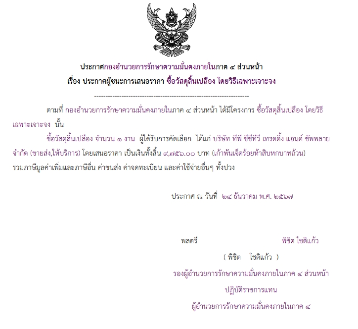 จัดซื้อ จัดจ้างประกาศผู้ชนะการเสนอราคา ประกาศผู้ขนะการเสนอราคา ชื่อวัสดุสิ้นเปลือง โดยวิธีเฉพาะเจาะจง January 10, 2025 254 Share Facebook Twitter Google+ Telegram LINE