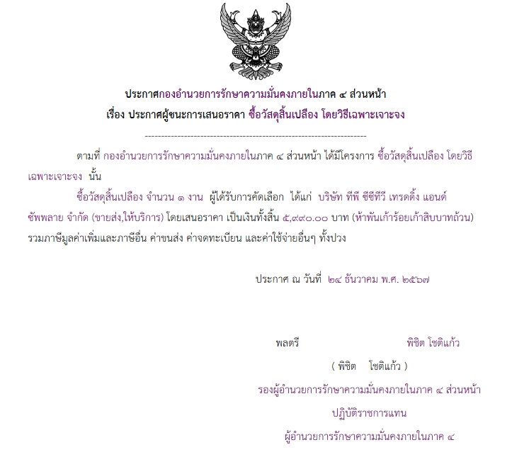จัดซื้อ จัดจ้างประกาศผู้ชนะการเสนอราคา ประกาศผู้ชนะการเสนอราคา ชื่อวัสดุสิ้นเปลือง โดยวิธีเฉพาะเจารจง January 10, 2025 332 Share Facebook Twitter Google+ Telegram LINE
