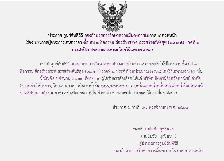 จัดซื้อ จัดจ้างประกาศผู้ชนะการเสนอราคา ประกาศผู้ขนะการเสนอราคา ซื้อ สป.๓ กิจกรรม สื่อสร้างสรรค์ สรรสร้างสันติสุข (๑๐.๓.๕) งวดที่ ๑ ประจำปีงบประมาณ ๒๕๖๘ โดยวิธีเฉพาะเจาะจง January 11, 2025 216 Share Facebook Twitter Google+ Telegram LINE