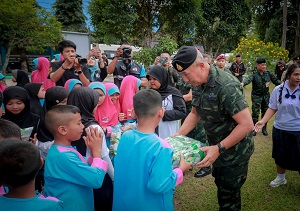โอกาสนี้ พลเอก พนา แคล้วปลอดทุกข์ ผู้บัญชาการทหารบก และคณะฯ เดินทางไปยังโรงเรียนบ้านยะบะ อำเภอรือเสาะ จังหวัดนราธิวาส เพื่อมอบของขวัญวันเด็กแห่งชาติ ประจำปี 2568 ให้กับน้อง ๆ นักเรียน ท่ามกลางการต้อนรับ จากผู้บังคับหน่วยฯ, ผู้อำนวยการโรงเรียนบ้านยะบะ, คณะครู บุคลากร น้อง ๆ นักเรียนโรงเรียนบ้านยะบะ เพื่อสร้างความสุข สร้างร้อยยิ้ม ทั้งนี้ ผู้บัญชาการทหารบกได้กล่าวอวยพรให้เด็ก ๆ ขอให้ทุกวันเป็นวันของเด็กที่พร้อมจะเติบโตสร้างสังคมที่มีคุณภาพในอนาคต พร้อมให้โอกาสทุกคนเดินหน้าไปด้วยกัน ดั่งคำขวัญวันเด็กแห่งชาติปีนี้ “ทุกโอกาส คือ การเรียนรู้ พร้อมปรับตัวสู่อนาคตที่เลือกเอง”