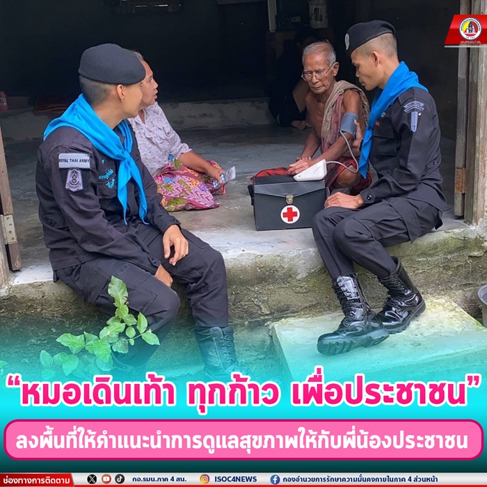 ทั้งนี้ชุดหมอเดินเท้าได้บริการทางการแพทย์ให้กับประชาชนอย่างเข้าถึง เพื่อเป็นการสร้างความสัมพันธ์อันดีระหว่างเจ้าหน้าที่และประชาชน ซึ่งแต่ละครั้งที่ชุดหมอเดินเท้าเข้าไปพบผู้ป่วยในโครงการ ก็ได้มีโอกาสพูดคุย สอบถามสารทุกข์สุขดิบของประชาชนในพื้นที่เพราะทหารพร้อมที่จะช่วยเหลือและอยู่เคียงข้างประชาชนในทุกโอกาส”