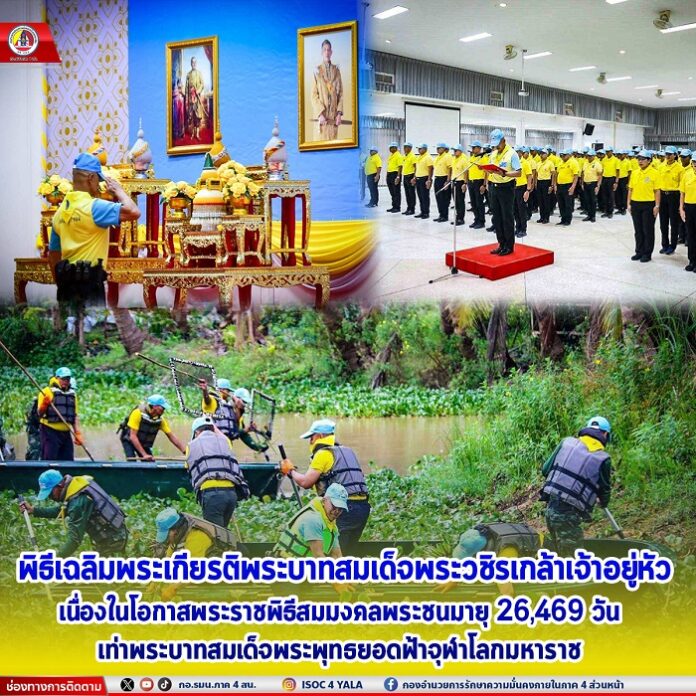 วันที่ 14 มกราคม 2568 เวลา 09.00 น. ที่ ค่ายสมเด็จพระสุริโยทัย กองพลทหารราบที่ 15 ตำบลบ่อทอง อำเภอหนองจิก จังหวัดปัตตานี พลตรี เฉลิมพร ขำเขียว ผู้บัญชาการกองพลทหารราบที่ 15 / ผู้อำนวยการศูนย์ประสานงานโครงการอันเนื่องมาจากพระราชดำริ เป็นประธานในพิธีเฉลิมพระเกียรติพระบาทสมเด็จพระวชิรเกล้าเจ้าอยู่หัว เนื่องในโอกาสพระราชพิธีสมมงคลพระชนมายุ 26,469 วัน เท่าพระบาทสมเด็จพระพุทธยอดฟ้าจุฬาโลกมหาราช สมเด็จพระปฐมบรมกษัตริยาธิราชแห่งพระบรมราชจักรีวงศ์นับเป็นมหามงคลสมัยพิเศษยิ่ง เป็นการน้อมรำลึกถึงพระมหากรุณาธิคุณอย่างหาที่สุดมิได้ ที่ทรงมีต่อพสกนิกรชาวไทยตลอดมา รวมทั้งเพื่อเป็นการแสดงออกซึ่งความจงรักภักดี และเทิดทูนสถาบันพระมหากษัตริย์ โดยมี คุณ สมฤดี ขำขียว ประธานสมาคมแม่บ้าน สาขา กองพลทหารราบที่ 15, สมาชิกสมาคมแม่บ้าน สาขา กองพลทหารราบที่ 15 ตลอดจน ผู้บังคับบัญชาหน่วยขึ้นตรงกองพลทหารราบที่ 15 และกำลังพลเข้าร่วมพิธีอย่างพร้อมเรียงกัน