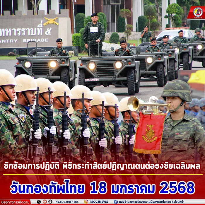 เมื่อวันที่ 14 มกราคม 2567 เวลา 13.30 น. พันเอก กุดั่น ทองคำ ผู้บังคับกองพันมณฑลทหารบกที่ 42 จัดกำลังพล จำนวน 1 กองร้อย เข้าร่วมกับ กองพันทหารปืนใหญ่ที่ 5 กรมทหารปืนใหญ่ที่ 5 ในการซักซ้อมการปฏิบัติ ให้กับกำลังพล ณ ค่ายเสนาณรงค์ ตำบลคอหงส์ อำเภอหาดใหญ่ จังหวัดสงขลา เพื่อเตรียมความพร้อม ในการสวนสนาม พิธีกระทำสัตย์ปฏิญาณตน ต่อธงชัยเฉลิมพล ประจำปี 2568 เนื่องใน “วันกองทัพไทย” 18 มกราคม 2568
