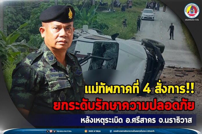 พลโท ไพศาล หนูสังข์ แม่ทัพภาคที่ 4/ผู้อำนวยการรักษาความมั่นคงภายในภาค 4 เปิดเผยว่า “ในห้วงที่ผ่านมาทางฝ่ายตรงข้ามมักจะก่อเหตุต่อเจ้าหน้าที่ทั้งฝ่ายทหาร ตำรวจ และฝ่ายปกครอง ทั้งขณะปฏิบัติหน้าที่ ห้วงลาพัก หรือแม้แต่ขณะปฏิบัติภารกิจส่วนตัวอยู่ในพื้นที่ เพราะเจ้าหน้าที่ส่วนใหญ่เป็นคนในพื้นที่ จึงทำให้เป็นเป้าหมายของฝ่ายตรงข้ามหลายครั้ง ทางกองอำนวยการรักษาความมั่นคงภายในภาค 4 ส่วนหน้า ได้จัดเตรียมแผนพิทักษ์กำลังพล ทั้งเป็นกำลังพลในโครงสร้างของกองอำนวยการรักษาความมั่นคงภายในภาค 4 ส่วนหน้า และเจ้าหน้าที่อื่นๆ ที่ไม่ได้อยู่ในโครงสร้างแต่ปฏิบัติงานอยู่ในพื้นที่ โดยใช้กำลังรักษาความปลอดภัยบุคคล แบ่งเป็น 2 ขั้น คือ ระหว่างการปฏิบัติหน้าที่ และระหว่างการลาพัก ในการรักษาความปลอดภัยก็จะแบ่งเป็น 3 มาตรการ คือ การรักษาความปลอดภัยโดยตัวเอง , การรักษาความปลอดภัยโดยชุมชน และการดูแลโดยเจ้าหน้าที่รัฐ ซึ่งในทุกๆ พื้นที่ก็จะมีมาตรการในการดูแลกำลังพลที่ปฏิบัติงาน”