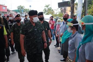 พลโท เกรียงไกร ศรีรักษ์ แม่ทัพภาคที่ 4 กล่าวว่า “ในส่วนของจังหวัดระนองมีการร่วมมือของทุกภาคส่วนเป็นอย่างดี จังหวัดระนองถือว่าเป็นจุดเสี่ยงจุดหนึ่ง เนื่องจากมีชายแดนติดกับประเทศเพื่อนบ้าน ซึ่งได้เน้นย้ำให้เจ้าหน้าที่ที่ปฏิบัติหน้าที่ให้เพิ่มมาตรการสำหรับการป้องกันการแพร่ระบาดของเชื้อไวรัส covid-19 ตลอดจน ความปลอดภัยของเจ้าหน้าที่ด้วย ต้องสวมหน้ากากป้องกัน สวมถุงมือ เจลล้างมือ หน้ากากที่จะสวมใส่เวลาเราไปสัมผัส ไปเจอกับพี่น้องประชาชนที่เดินทาง เพราะมันมีความเสี่ยงตลอดเวลา เพราะฉะนั้นอุปกรณ์เหล่านี้ วันนี้เรามีสนับสนุนให้สำหรับเจ้าหน้าที่ กองทัพบก โดย พลเอก ณรงค์พันธ์ จิตต์แก้วแท้ ผู้บัญชาการทหารบก ก็ได้มีความห่วงใย ได้เน้นย้ำทุกจุดตรวจ จุดบริการประชาชนให้เตรียมความพร้อมไว้ตลอด และก็ให้ปฏิบัติตามมาตรการอย่างเคร่งครัด ในการที่จะบำบัดทุกข์บำรุงสุขให้กับพี่น้องประชาชนระหว่างการเดินทางในช่วงเทศกาลปีใหม่ ขอให้ทุกส่วนเน้นการบูรณาการร่วมทั้งกำลังเจ้าหน้าที่ทหารตำรวจ และฝ่ายพลเรือน สร้างภาวะการรับรู้ให้พี่น้องประชาชนให้ช่วยกันสอดส่องคนแปลกหน้าที่เข้ามาในพื้นที่ ขอให้มีความร่วมมือร่วมใจกัน สร้างความรับผิดชอบต่อสังคม การ์ดอย่าตก ส่วนกำลังป้องกันชายแดนจะยังคงคุมเข้มตรึงพื้นที่ตลอด 24 ชั่วโมง ขอให้ประชาชนมีความมั่นใจต่อการทำงานที่เข้มแข็งของเจ้าหน้าที่รัฐ”