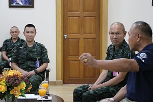 โอกาสนี้ พลเอก ไพโรจน์ วิไลลักษณ์ อดีตเจ้ากรมกิจการชายแดนทหาร ในฐานะตัวแทนคณะผู้บริจาค ได้ลงพื้นที่ร่วมพูดคุยร่วมกับกองอำนวยการรักษาความมั่นคงภายในภาค 4 ส่วนหน้า โดยมี พลตรี กรกฎ ภู่โชติ รองผู้อำนวยการรักษาความมั่นคงภายในภาค 4 ส่วนหน้าและคณะผู้บังคับบัญชาร่วมให้การต้อนรับ ณ ห้องรับรอง กองอำนวยการรักษาความมั่นคงภายในภาค 4 ส่วนหน้า ตำบลเขาตูม อำเภอยะรัง จังหวัดปัตตานี ในวันที่ 16 มกราคม 2568 เวลา 14.45 น. เพื่อร่วมประชุมหารือและประสานการปฏิบัติเกี่ยวกับการมอบทุนการศึกษาให้กับนักเรียนในพื้นที่