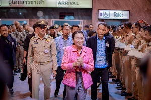 วันนี้ (16 มกราคม 2568) ณ ท่าอากาศยานนราธิวาส อำเภอเมือง จังหวัดนราธิวาส พลโท ไพศาล หนูสังข์แม่ทัพภาคที่ 4 /ผู้อำนวยการรักษาความมั่นคงภายในภาค 4 พร้อมด้วย ว่าที่ร้อยตรี ตระกูล โทธรรม ผู้ว่าราชการจังหวัดนราธิวาส ,พันตำรวจโท วรรณพงษ์ คชรักษ์ เลขาธิการศูนย์อำนวยการบริหารจังหวัดชายแดนภาคใต้ หัวหน้าส่วนราชการ ข้าราชการ และเจ้าหน้าที่ ร่วมต้อนรับฯ นางสาวแพทองธาร ชินวัตร นายกรัฐมนตรี พร้อมคณะเดินทางลงพื้นที่จังหวัดนราธิวาส ในโอกาสเดินทางมาตรวจเยี่ยมการพัฒนาพื้นที่จังหวัดชายแดนภาคใต้ (จังหวัดนราธิวาส ปัตตานี และยะลา)