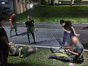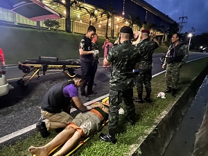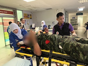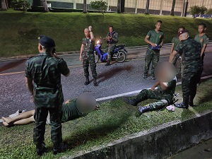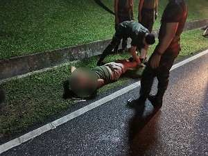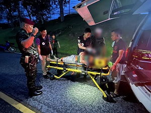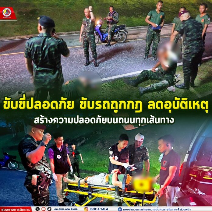 วันที่ 17 มกราคม 2568 เวลา 05.45 น. ที่ค่ายสิรินธร ตำบลเขาตูม อำเภอยะรัง จังหวัดปัตตานี พลตรี ชาคริต อุจะรัตน รองแม่ทัพภาคที่ 4 /รองผู้อำนวยการรักษาความมั่นคงภายในภาค 4 ส่วนหน้า เข้าช่วยเหลือกำลังพล 2 นาย บาดเจ็บจากอุบัติเหตุรถจักรยานยนต์ชนกำลังพลขณะวิ่งออกกำลังกายตอนเช้า โดยประสานทีมแพทย์ทหารจากศูนย์แพทย์จังหวัดชายแดนภาคใต้ (ศพชต.) นำผู้บาดเจ็บทั้งสองรายนำส่งโรงพยาบาลศูนย์ยะลา ขณะนี้ผู้ป่วยอาการปลอดภัยพ้นขีดอันตรายแล้ว