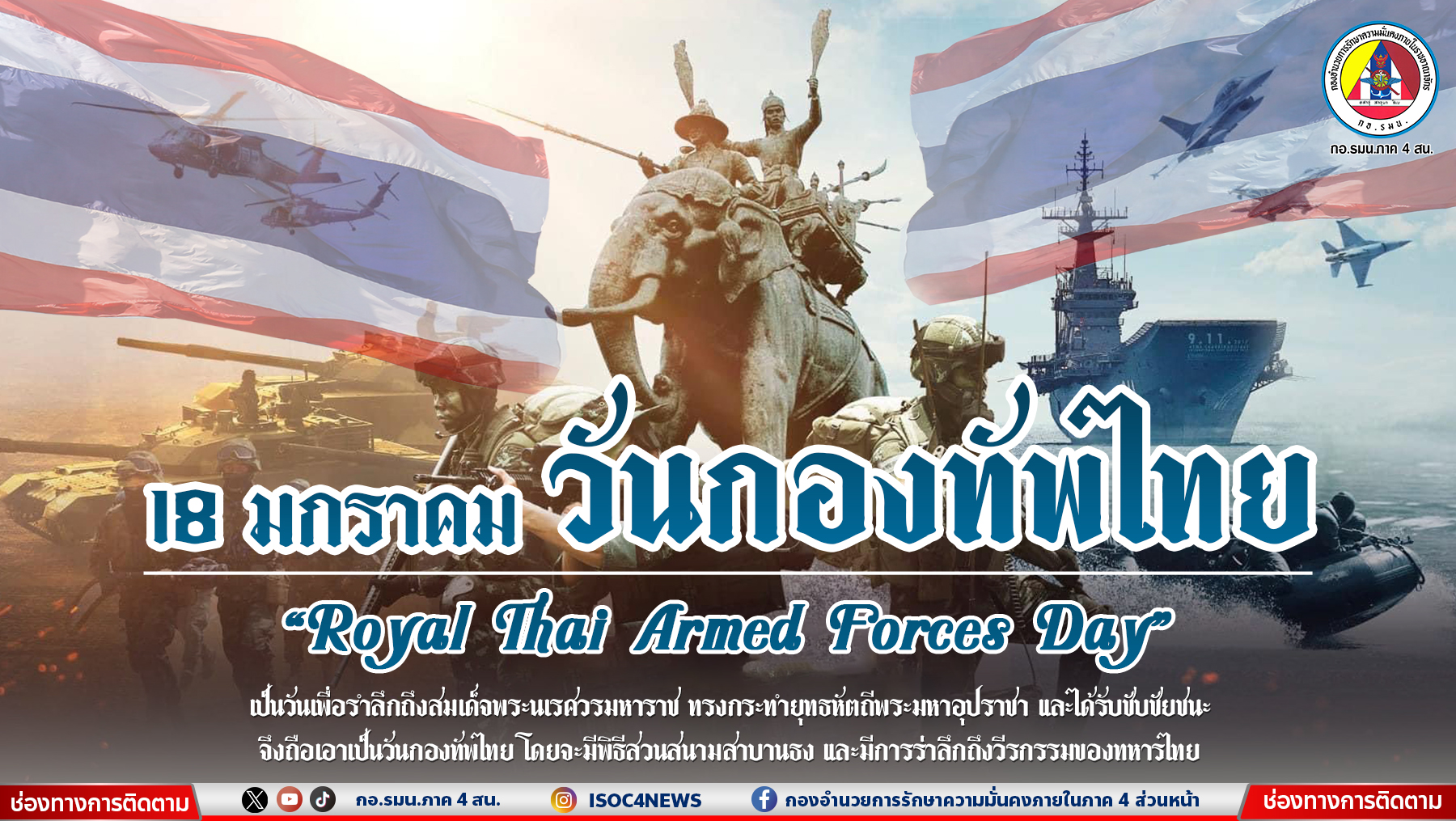 วันกองทัพไทย หรือ วันกองทัพบกเป็นวันที่รำลึกถึงวีรชนผู้กล้า สมเด็จพระนเรศวรมหาราช ทรงทำยุทธหัตถี เพื่อพิทักษ์รักษาเอกราช และอธิปไตยของชาติ ทำให้ไทยคงความเป็นเอกราช จนถึงทุกวันนี้