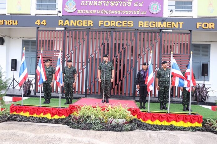 โดยวันนี้ (19 มกราคม 2568) พลตรี วรเดช เดชรักษา รองแม่ทัพภาคที่ 4 / รองผู้อำนวยการรักษาความมั่นคงภายในภาค 4 ส่วนหน้า พร้อมคณะฯ ลงพื้นที่ตรวจเยี่ยม ติดตามการปฏิบัติงานหน่วยเฉพาะกิจกรมทหารพรานที่ 44 และมอบแนวทางนโยบายการปฏิบัติงานของ พลโท ไพศาล หนูสังข์ แม่ทัพภาคที่ 4 / ผู้อำนวยการรักษาความมั่นคงภายในภาค 4 มาเน้นย้ำแก่กำลังพลและหัวหน้าส่วนราชการที่เกี่ยวข้อง พร้อมพบปะเยี่ยมให้กำลังใจแก่กำลังพล ในการนี้ พันเอก ภาคภูมิ จันทรักษ์ ผู้บังคับหน่วยเฉพาะกิจกรมทหารพรานที่ 44 ได้รายงานสรุปสถานการณ์ และการปฏิบัติงานของหน่วยในพื้นที่รับผิดชอบ 4 อำเภอ ประกอบด้วย อำเภอสายบุรี, อำเภอกะพ้อ, อำเภอทุ่งยางแดง และอำเภอไม้แก่น โดยมีกำลังพลหน่วยเฉพาะกิจกรมทหารพรานที่ 44, หัวหน้าส่วนราชการ ให้การต้อนรับและร่วมประชุมฯ