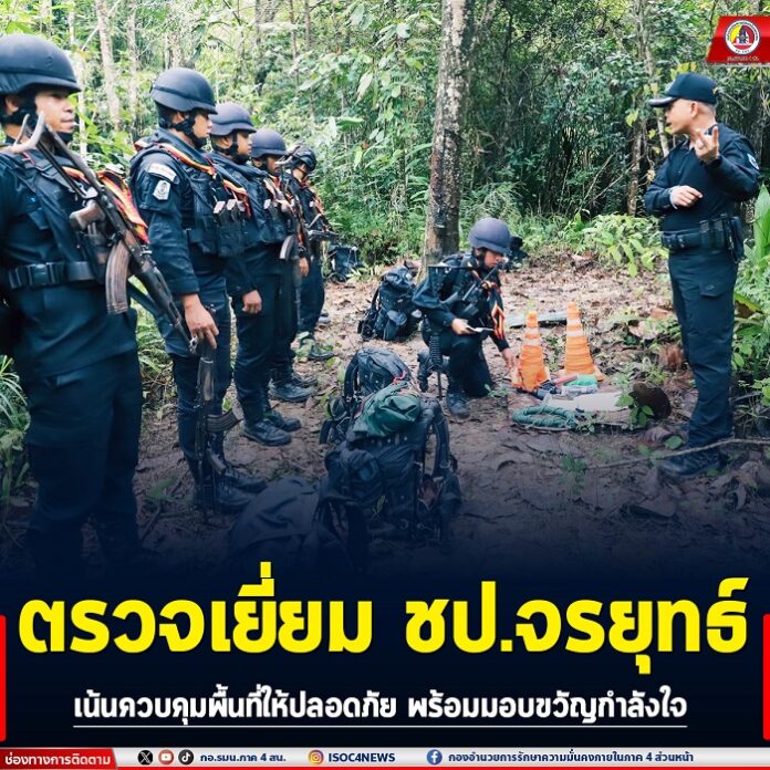 วันที่ 19 มกราคม 2568 เวลา 10.50 น. พันเอก พัศวีร์ โปชะดา ผู้บังคับหน่วยเฉพาะกิจกรมทหารพรานที่ 49 ลงพื้นที่ตรวจเยี่ยมให้กำลังใจการปฏิบัติงานของกำลังพลชุดปฏิบัติการจรยุทธ์ (ชป.จรยุทธ์) ณ บ้านไอร์กาแซ หมู่ที่ 6 ตำบลศรีสาคร อำเภอศรีสาคร จังหวัดนราธิวาส
