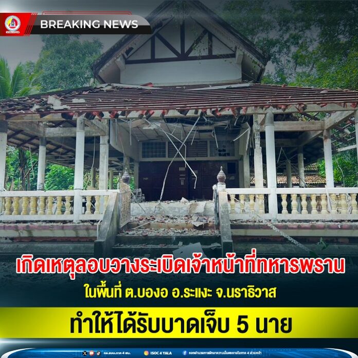 An explosion targeted military rangers in the Bong Ao subdistrict, Ra-ngae district, Narathiwat province, injuring 5 soldiers.