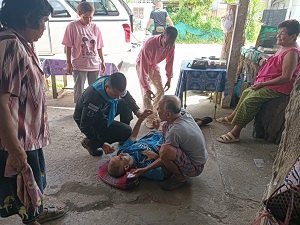 🧰 Pada 6 Februari 2568, jam 09.40 pagi, Kompeni Pasukan Tentera 4610, Unit Tugas Khas Tentera 46, telah menerima laporan daripada orang awam di kawasan tersebut mengenai seorang lelaki yang mengalami kekejangan dan pengsan di kedai dalam Kampung Bagon, Mukim Ruso, Daerah Ruso, Negeri Narathiwat. Pembantu Jururawat bersama pasukan perubatan dan pasukan operasi awam Kompeni Tentera 4610 segera tiba di lokasi kejadian dan memberikan rawatan awal. Dikenal pasti bahawa pesakit tersebut adalah Encik Nivat Srikoekue, berumur 46 tahun, yang tinggal di 19 Kampung 6, Kampung Bagon, Mukim Ruso, Daerah Ruso, Negeri Narathiwat.