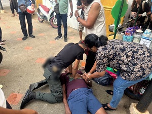 เพียง 10 นาทีต่อมา ใกล้จุดเกิดเหตุ มีนักท่องเที่ยวชาย ชาวมาเลเซีย อายุประมาณ 60 ปี เกิดหมดสติขณะซื้อของ ดาบตำรวจศรชัย ศรีศาสนา พยาบาลสนามชุดเฝ้าตรวจชายแดนที่ 4405 พร้อมเจ้าหน้าที่ อีก 5 นาย รีบเข้าช่วยเหลือทันที
