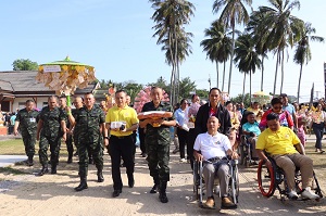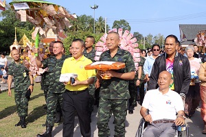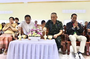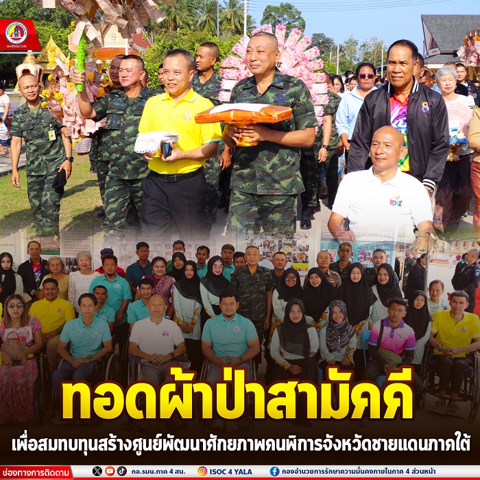 วันที่ 8 กุมภาพันธ์ 2568 เวลา 09.30 น. ที่ วัดสุวรรณากร ตำบลบ่อทอง อำเภอหนองจิก จังหวัดปัตตานี พลตรี ขจรศักดิ์ อินทร์ทอง ผู้บัญชาการมณฑลทหารบกที่ 46/ผู้บังคับหน่วยเฉพาะกิจปัตตานี เป็นประธานฝ่ายฆราวาสในพิธีทอดผ้าป่าสามัคคี เพื่อสมทบทุนสร้างศูนย์พัฒนาศักยภาพคนพิการจังหวัดชายแดนภาคใต้ ในพื้นที่บ้านใหม่ทุ่งนเรนทร์ หมู่ที่ 7 ตำบลบ่อทอง อำเภอหนองจิก จังหวัดปัตตานี มีพื้นที่ขนาด 20 ไร่ ใช้งบประมาณในการก่อสร้างประมาณ 15,000,000 บาท (สิบห้าล้านบาทถ้วน) และเพื่อรักษาขนบธรรมเนียมประเพณีของชาวพุทธ ตลอดจนทำนุบำรุงพระพุทธศาสนา อีกทั้งส่งเสริมให้ประชาชนในพื้นที่จังหวัดชายแดนภาคใต้ได้ปฏิบัติหน้าที่ของพุทธศาสนิกชนที่ดี โดยมี พระราชวัชรญาณโมลี รองเจ้าคณะภาค 18 เป็นประธานฝ่ายสงฆ์ พร้อมด้วย คุณสมนึกและคุณอารีย์ มณีโชติ จากห้างหุ้นส่วนจำกัด ปัตตานีสหพันธ์ก่อสร้าง, ที่ปรึกษาผู้อำนวยการรักษาความมั่นคงภายในภาค 4, รองผู้บังคับหน่วยเฉพาะกิจปัตตานี, ผู้แทนจากศูนย์ประสานงานโครงการอันเนื่องมาจากพระราชดำริ, ศูนย์อำนวยการบริหารจังหวัดชายแดนภาคใต้, เทศบาลตำบลบ่อทอง และคณะผู้บังคับบัญชา, หน่วยงานภาครัฐและภาคเอกชน พร้อมพุทธศาสนิกชนในพื้นที่ ร่วมอนุโมทนาบุญจำนวนมาก โดยพิธีทอดผ้าป่าสามัคคีในครั้งนี้มีผู้มีจิตศรัทธาร่วมกันสมทบทุน โดยมียอดถวายปัจจัยจำนวนทั้งสิ้น 700,000 บาท (เจ็ดแสนบาทถ้วน) แต่กระแสแรงแห่งความศรัทธาของผู้คนยังคงแรงกล้า ยอดบริจาคยังคงหลั่งไหลเข้ามาอย่างต่อเนื่อง ซึ่งบรรยากาศภายในงานเป็นไปอย่างอบอุ่นอิ่มบุญและเต็มเปี่ยมด้วยศรัทธา โดยมีพิธีถวายผ้าป่า การแสดงธรรมเทศนา และกิจกรรมร่วมบุญต่าง ๆ ซึ่งเงินบริจาคที่ได้รับจากงานครั้งนี้จะนำไปใช้ในการก่อสร้างและพัฒนาศูนย์ฯ ให้สามารถดำเนินงานได้อย่างมีประสิทธิภาพ