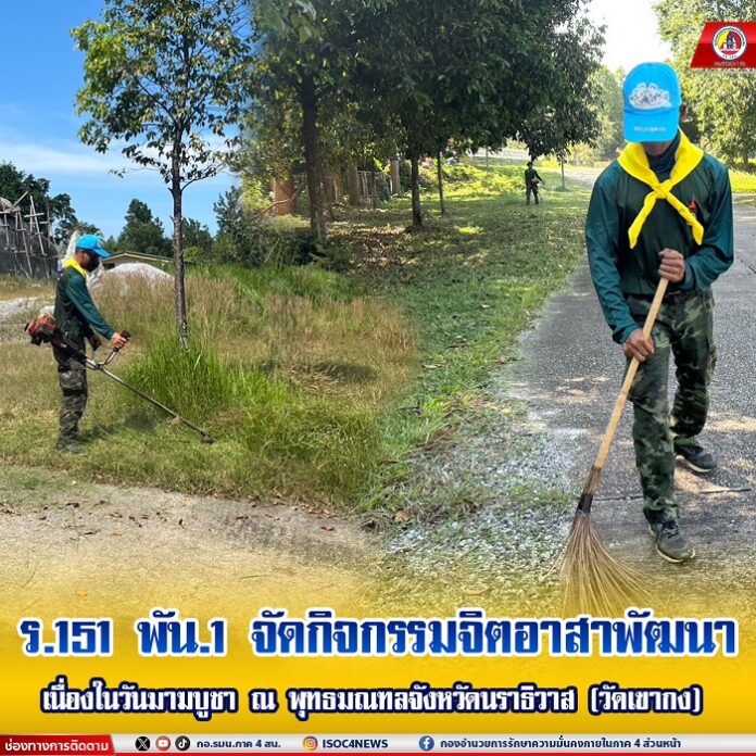 🚒 R.151 Battalion 1 organizes a volunteer development activity on the occasion of Magha Puja Day at the Buddhist Monument in Narathiwat Province (Wat Khao Kong).