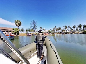 Water patrol is an operation carried out for the safety of the public in Pattani Province, which is often a hotspot for illegal activities such as smuggling contraband or movements by hostile groups. Under the command of Colonel Phakphum Chantrarak, Commander of the Special Task Unit, 44th Ranger Regiment, a specialized operation team (Ch.P. Special) has been formed. This team, with expertise in monitoring and tracking threats along water routes, conducts intensive water patrols along the Sai Buri River to prevent and intercept any potential illegal activities.