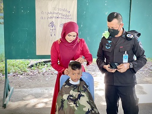 During the event, consumable goods and educational scholarships were provided to underprivileged students, and free haircuts were offered to students as part of the “Kesasa Sarn Jai” project.