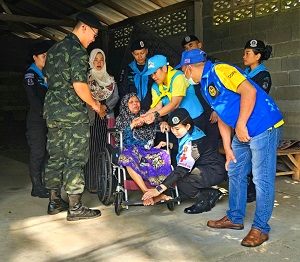 On February 14, 2025, at 09:00 AM, the 44th Special Task Force, along with Royal Volunteer 904, Civil Affairs Operation Team, the Southern Border Provinces Medical Center (SBPMC), local leaders, and Village Health Volunteers (VHVs), organized a Mobile Medical Unit service at the Multi-Purpose Building of Kolokapaseh Mosque, Karubi Subdistrict, Kapho District, Pattani Province. The event included basic life-saving training and provided knowledge on emerging diseases and re-emerging diseases to the local community.