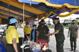 เมื่อวันที่ 3 มกราคม 2564 เวลา 14.00 น. ณ บริเวณหน้าค่ายเสนาณรงค์ อำเภอหาดใหญ่ จังหวัดสงขลา พลตรี ศานติ ศกุนตนาค ผู้บัญชาการกองพลทหารราบที่ 5 ลงพื้นที่ตรวจเยี่ยมจุดบริการประชาชน ร.5 พัน.1 เนื่องในห้วงวันหยุดเทศกาลปีใหม่ 2564 พร้อมกับพบปะเจ้าหน้าที่ และมอบนโยบาย/ข้อห่วงใยในการปฏิบัติตนในห้วงสถานการณ์ COVID-19 อีกทั้งยังได้มอบสิ่งของอุปโภค เพื่อสร้างขวัญกำลังใจให้กับเจ้าหน้าที่ที่ปฏิบัติงาน