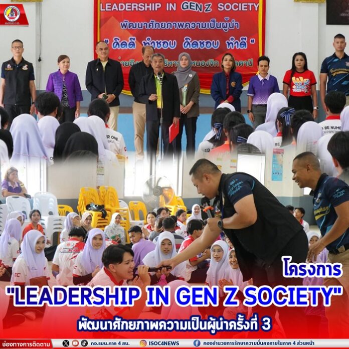 The Special Task Force for Peace, under the Southern Border Provinces Administrative Center, supported the LEADERSHIP IN GEN Z SOCIETY project, which is the 3rd edition of a leadership development program for the new generation. This program took place at the New Soldier Training Unit, 46th Military Area, Inkiyuthabarik Camp, Bo Thong Subdistrict, Nongjik District, Pattani Province. The objective is to develop academic potential and life skills for youth, fostering an understanding of living harmoniously with others while motivating them to recognize leadership roles both within their communities and in the broader society. The opening ceremony was presided over by Mr. Sanan Santimeung, Deputy Governor of Pattani Province.