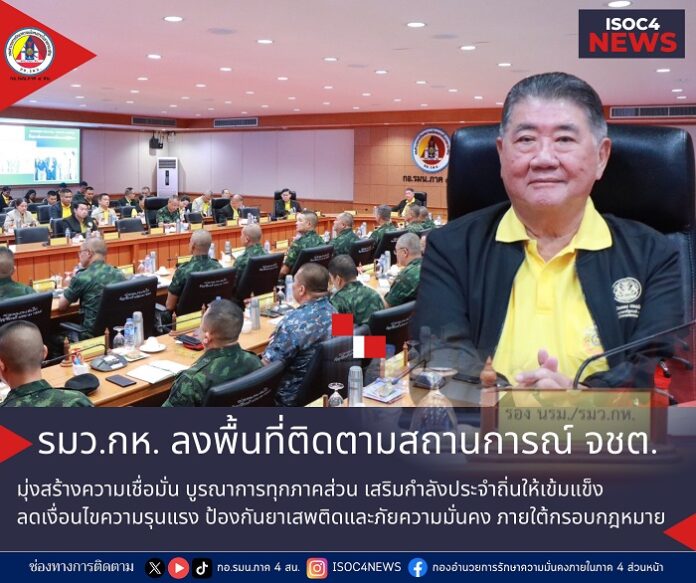 ทั้งนี้ กองอำนวยการรักษาความมั่นคงภายในภาค 4 ส่วนหน้าขับเคลื่อนการแก้ไขปัญหาตามนโยบายสำคัญของรัฐบาลในห้วงที่ผ่านมามีการควบคุมพื้นที่ และการบังคับใช้กฎหมาย 34 ครั้ง ควบคุมตัวผู้ต้องสงสัย 32 คน สำหรับงานด้านป้องกัน และแก้ไขปัญหายาเสพติดได้บังคับใช้กฎหมายคดียาเสพติด 1,616 คดี จับกุมผู้กระทำความผิด 1,699 คน ตรวจยึดของกลางพร้อมนำตัวผู้ป่วยที่มีพฤติกรรมก้าวร้าวเข้ารับการบำบัดรักษา ในระบบสาธารณสุข จำนวน 81 ราย ,งานการส่งเสริมการอยู่ร่วมกันภายใต้สังคมพหุวัฒนธรรมที่เข้มแข็ง ได้ส่งเสริมการฟื้นฟูวัฒนธรรมประเพณีอันดีงามและขับเคลื่อนให้ชุมชน 2 วิถี เรียนรู้ ยอมรับการอยู่ร่วมกันในสังคมพหุวัฒนธรรม ควบคู่การสร้างความเข้าใจแก่ กำนัน ผู้ใหญ่บ้าน ให้มีส่วนร่วมดูแลประชาชนจากปัญหาความมั่นคง พร้อมลงนามรับรองแนวทางการปลูกฝัง “ยะกีน”ฉบับชาวบ้าน(กีตาบเล็ก) ถือเป็นแนวทางการปลูกฝังจิตสำนึกของคนในชุมชน และขับเคลื่อนธรรมนูญหมู่บ้าน 9 ดี (ฮูกุมปากัต) ในทุกชุมชนต่อเนื่อง รวมทั้งขับเคลื่อนโครงการสานใจสู่สันติ และพบปะพัฒนาสัมพันธ์ รับฟังข้อคิดเห็นและปัญหาในพื้นที่ สร้างความเข้าใจ รู้เท่าทันกลุ่มขบวนการ ตลอดจนผลักดันเศรษฐกิจให้สร้างงานสร้างอาชีพแก่ประชาชนอย่างยั่งยืน รวมทั้งนำยุทโธปกรณ์หน่วยสนับสนุนการแก้ไขปัญหาภัยพิบัติให้มีความพร้อมยุทโธปกรณ์เข้าช่วยเหลือประชาชนเมื่อเกิดภัยพิบัติในทันที ทั้งฟื้นฟูสถานการณ์ การดูแลสุขภาพและจิตใจ การเยียวยา อีกทั้งด้านการสกัดกั้นตามแนวชายแดนได้ควบคุมการผ่านเข้า – ออก ของ บุคคล,การเคลื่อนย้ายอาวุธ, วัตถุระเบิด ตลอดจนภัยแทรกซ้อนทุกรูปแบบ จับกุมแรงงานต่างด้าว 21 ครั้ง ผู้ต้องหา 100 คน, จับกุมสินค้าหนีภาษี 13 ครั้ง ผู้ต้องหา 7 คน และผลคืบหน้าโครงการเพิ่มประสิทธิภาพ การควบคุมพื้นที่ชายแดน งานก่อสร้างเขื่อนป้องกันตลิ่ง ริมแม่น้ำโก-ลก ปัจจุบัน คิดเป็นร้อยละ 73.10 % ขณะที่สถานการณ์ด้านภัยความมั่นคงพบปัญหาด้านภัยแทรกซ้อน มีความเชื่อมโยงระหว่างกลุ่มผู้ก่อเหตุรุนแรง โดยอาศัยสถานการณ์ที่เกิดขึ้น ลักลอบกระทำผิดกฎหมาย ตั้งแต่ 1 ตุลาคม 2567 – ปัจจุบัน จำนวน 55 ครั้ง นอกจากนี้การเสริมสร้างความเข้มแข็งให้กับเจ้าหน้าที่และอาสาสมัครประจำพื้นที่ได้ใช้กลไกการบริหารส่วนราชการปกติขับเคลื่อนการพัฒนาของกระทรวง ทบวง กรม ลงสู่หมู่บ้าน/ชุมชน ได้ดำเนินการฝึกเสริมสร้างขีดความสามารถสมาชิกกองอาสารักษาดินแดน (อส.จชต.) (หลักสูตรผู้นำ อส.จชต.) จำนวน 24 รุ่น (2,532 นาย) เน้นส่งเสริมกระบวนการมีส่วนร่วมของทุกภาคส่